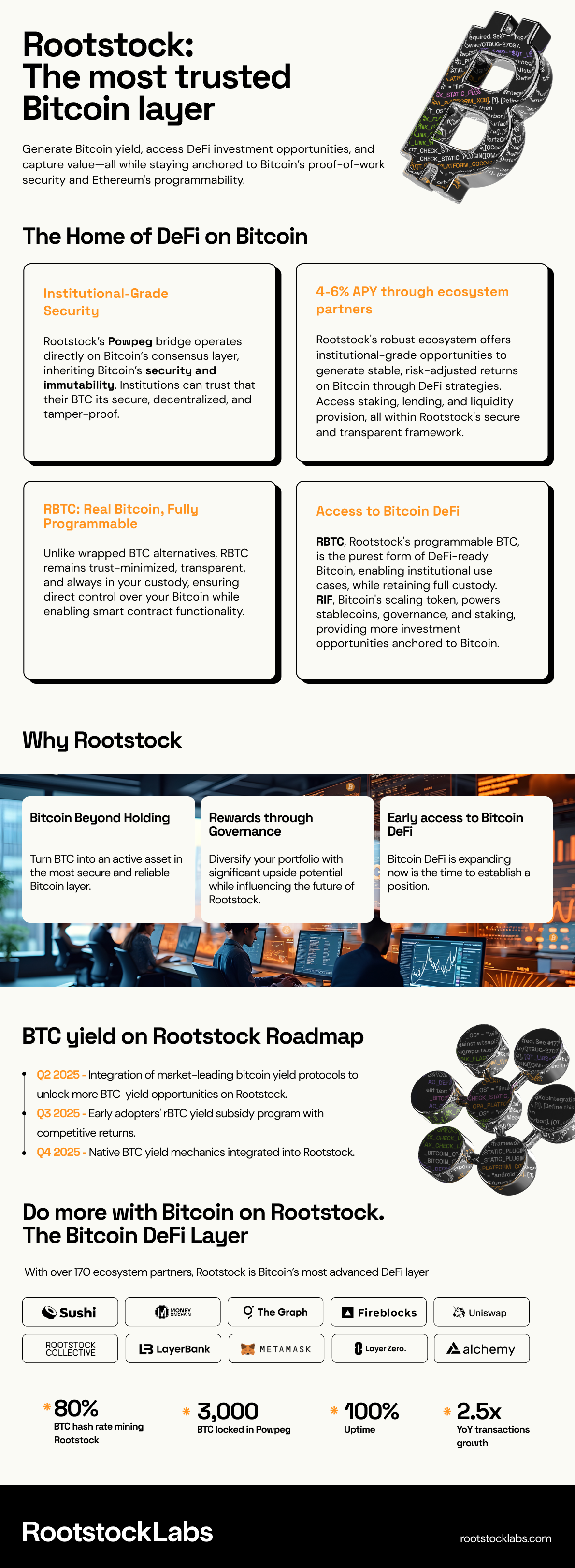 Pioneers in building with Bitcoin, with the aim of breaking boundaries in the financial world and the participatory economy. I have been working with the Rootstocklabs project, company and brand, how it is exposed to the world, how it connects with others and with its ecosystem. A proposal that counters the harsh and rigid traditional economy.